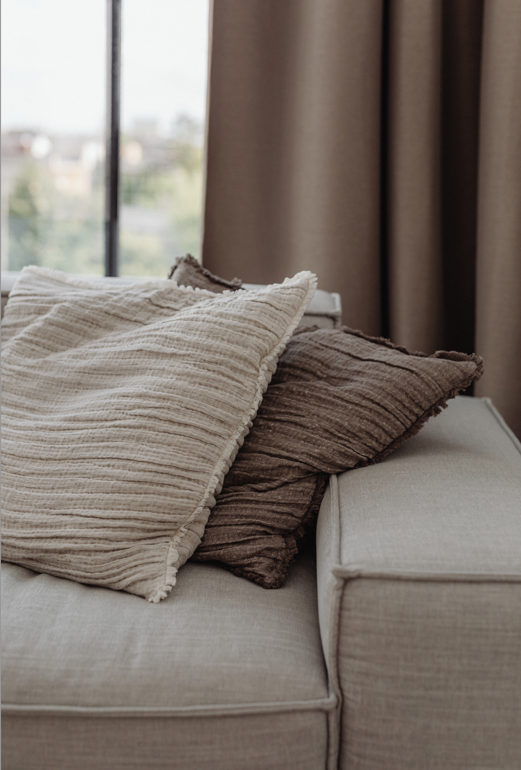 Set de fundas de cojín de lino con diseño elegante y moderno. Perfectas para darle un toque de estilo y calidez al sofá, la cama o la sala de lectura. Combina confort y diseño para crear un ambiente acogedor.